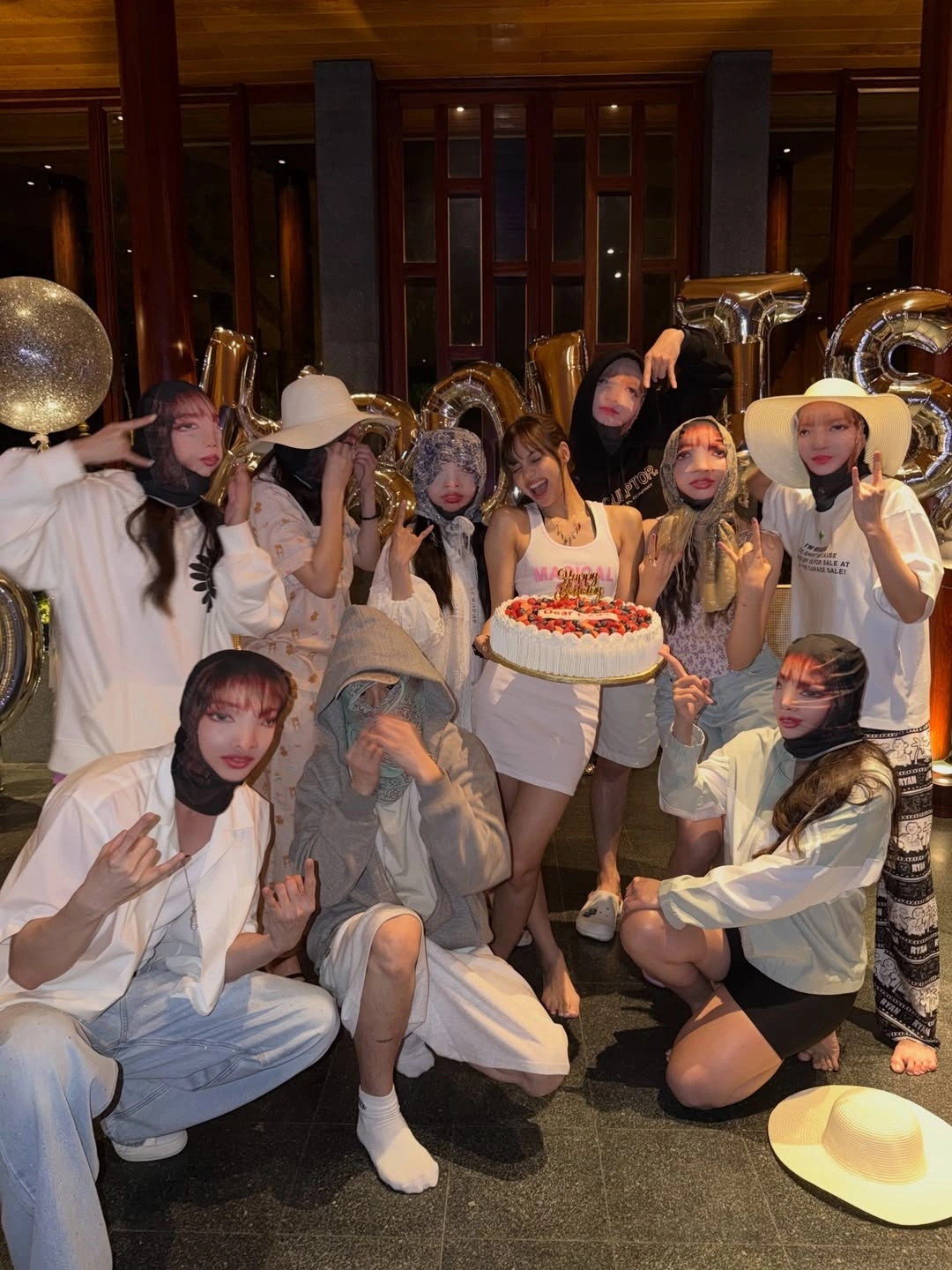 Trước đó, êkíp cũng tổ chức tiệc sinh nhật và tặng Lisa bánh kem khổng lồ.