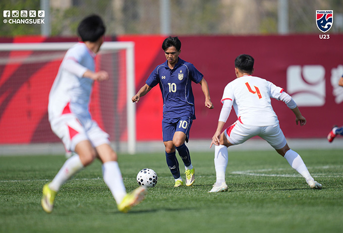 - Ở trận khai màn, U23 Thái Lan đã chia điểm với U23 Trung Quốc. Đoàn quân của ông Thawatchai đã vận hành sơ đồ 5-3-2 trong hiệp 1 rất hiệu quả. Hệ thống tấn công của đội bóng xứ Chùa vàng vận hành khá hiệu quả khi thể hiện tốc độ nhanh, tận dụng khoảng trống trước cầu môn của U23 Trung Quốc rất tốt.