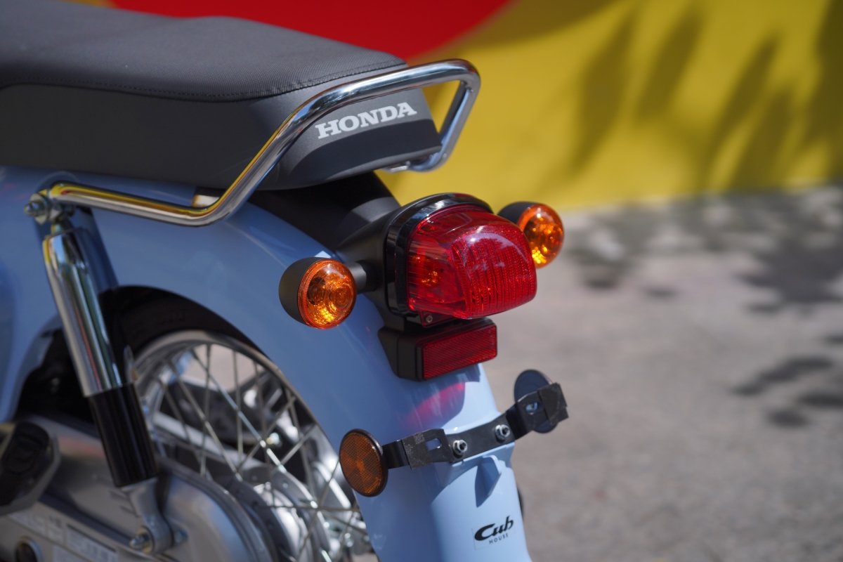 Đèn hậu và xi-nhan mang phong cách cổ điển và sử dụng bóng halogen. Xe nặng khoảng gần 100 kg.