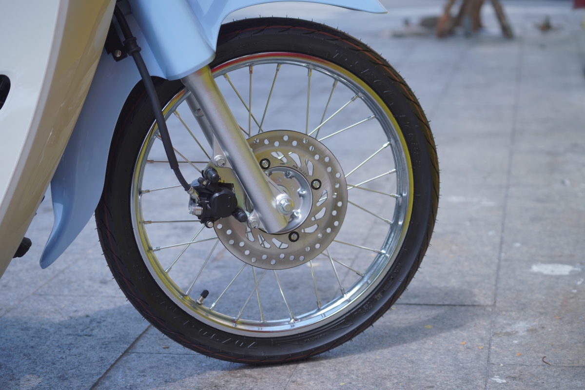 Bánh xe phía sau sử dụng phanh tang trống. Ống xả có ốp bảo vệ, tránh gây bỏng cho người dùng.
